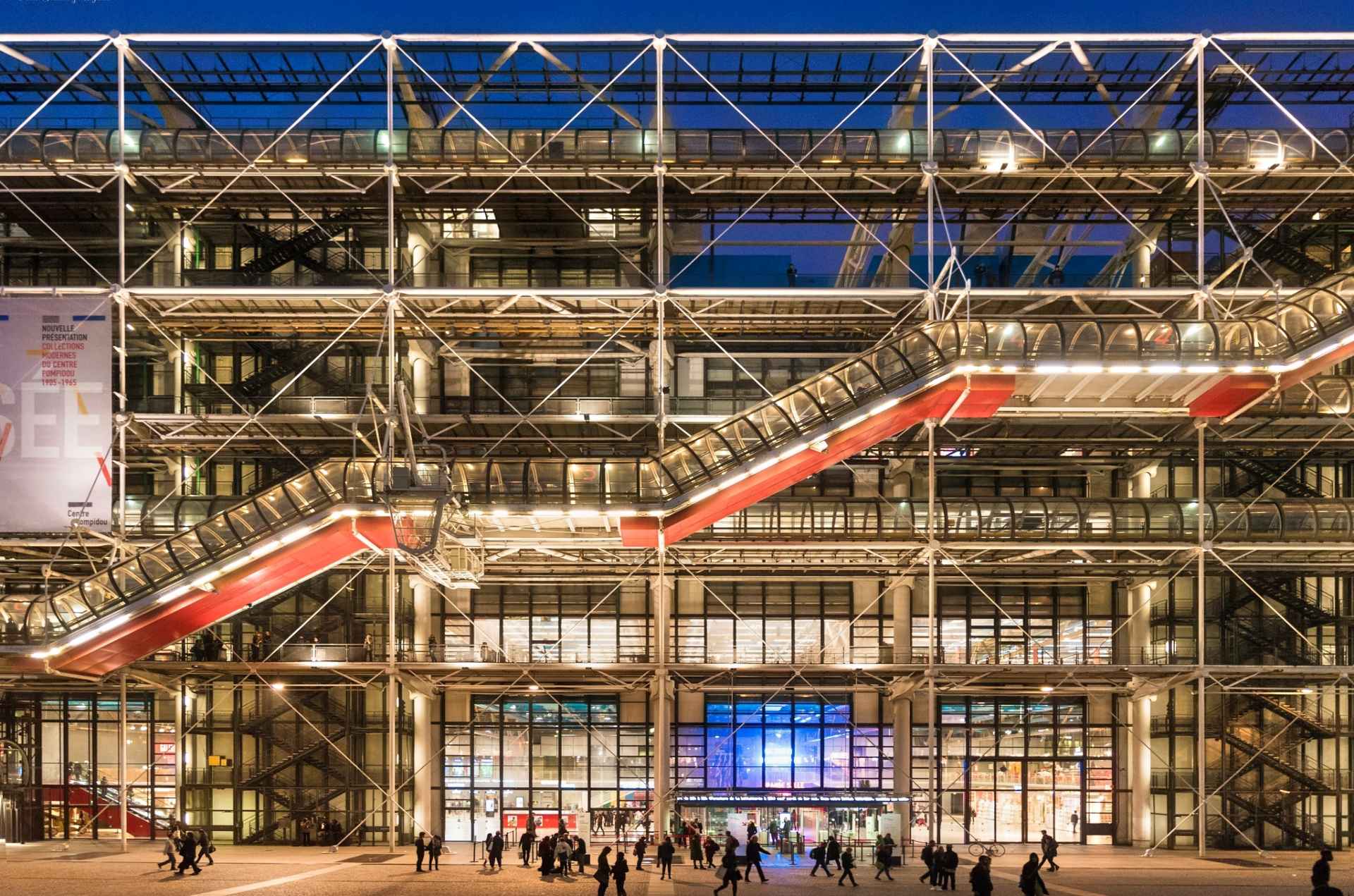 L’inaugurazione del Centre Pompidou avvenne nel 1977, con più di 13000 opere su 8000 metri quadrati, una struttura imponente con sei piani in cui venne accolto il museo Pompidou  ma anche una biblioteca specializzata, diverse sale per proiezioni cinematografiche, un café ristorante con vista panoramica sulla città e aree espositive per mostre temporanee.